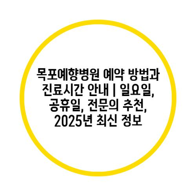 목포예향병원 예약 방법과 진료시간 공지 | 일요일, 공휴일, 전연락 추천, 2025년 최신 정보 에 대해 자주 묻는 질문 TOP 5