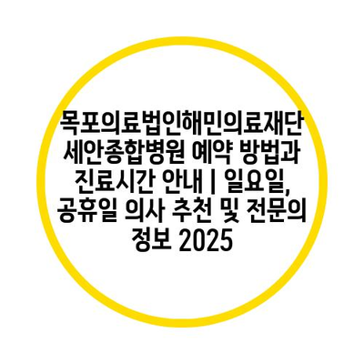 목포의료법인해민의료재단 세안종합병원 예약 방법과 진료시간 공지 | 일요일, 공휴일 의사 추천 및 전연락 정보 2025 에 대해 자주 묻는 질문 TOP 5