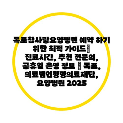 ✅ 목포참사랑요양병원의 진료시간과 예약 방법을 알아보세요.