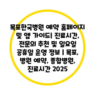 목포한국병원 예약 홈페이지 및 앱 설명서| 진료시간, 전연락 추천 및 일요일 공휴일 운영 정보 | 목포, 병원 예약, 종합병원, 진료시간 2025 에 대해 자주 묻는 질문 TOP 5