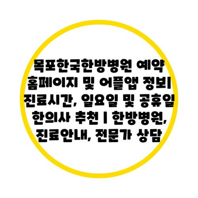 목포한국한방병원 예약 홈페이지 및 어플앱 정보| 진료시간, 일요일 및 공휴일 한의사 추천 | 한방병원, 진료공지, 전문가 상담 에 대해 자주 묻는 질문 TOP 5