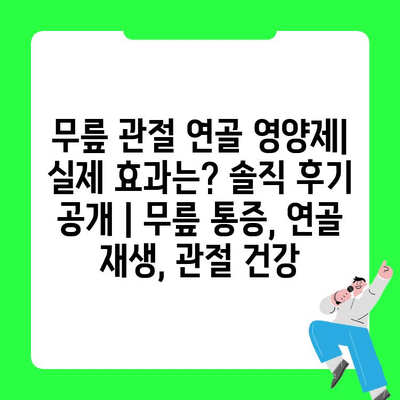✅ 무릎 연골 영양제, 정말 효과 있을까요? 실제 사용 후기를 통해 효과를 확인하고, 나에게 맞는 제품을 찾아보세요!