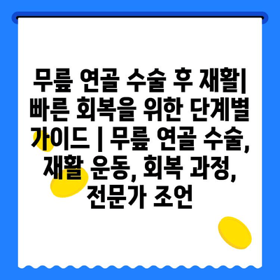 무릎 연골 수술 후 재활| 빠른 회복을 위한 단계별 설명서 | 무릎 연골 수술, 재활 운동, 회복 과정, 전문가 조언