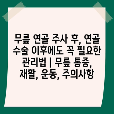 ✅ 무릎 연골 주사 후, 연골 수술 이후에도 꼭 필요한 관리법을 자세히 알아보고, 성공적인 회복을 위한 전문가 조언을 확인하세요!