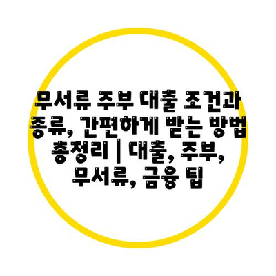 무서류 주부 대출 조건과 종류, 간편하게 받는 방법 총정리 | 대출, 주부, 무서류, 금융 팁