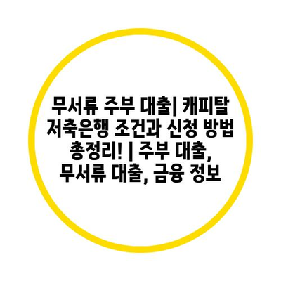 무서류 주부 대출| 캐피탈 저축은행 조건과 신청 방법 총정리! | 주부 대출, 무서류 대출, 금융 정보 에 대해 자주 묻는 질문 TOP 5
