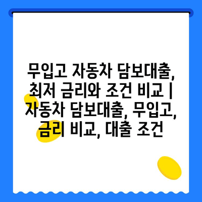 무입고 자동차 담보대출, 최저 금리와 조건 비교 | 자동차 담보대출, 무입고, 금리 비교, 대출 조건