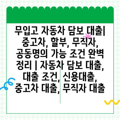무입고 자동차 담보 대출 | 중고차, 할부, 무직자, 공동명의 가능 조건 완벽 정리 | 자동차 담보 대출, 대출 조건, 신용대출, 중고차 대출, 무직자 대출