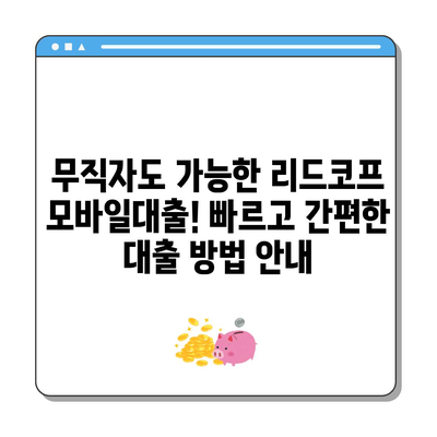 무직자도 가능한 리드코프 모바일대출! 빠르고 간편한 대출 방법 안내
