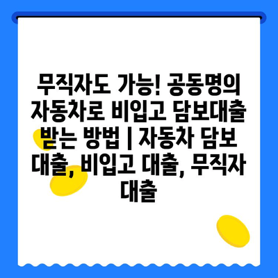 무직자도 가능! 공동명의 자동차로 비입고 담보대출 받는 방법 | 자동차 담보 대출, 비입고 대출, 무직자 대출