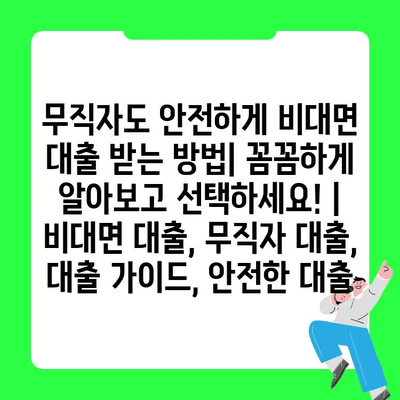 이 글에서는 무직자도 안전하게 비대면 대출을 받는 방법을 알려제공합니다. 대출 제품 비교부터 대출 조건 확인, 안전한 대출 이용 팁까지, 대출 과정을 단계별로 상세히 공지해 알려드리겠습니다. 무직자 대출, 이제 막막하게 생각하지 마세요!