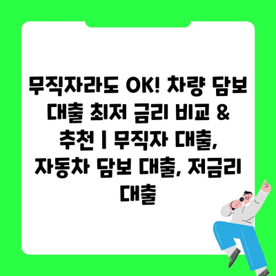 무직자도 OK! 차량 담보 대출 최저 금리 비교 & 추천 | 무직자 대출, 자동차 담보 대출, 저금리 대출