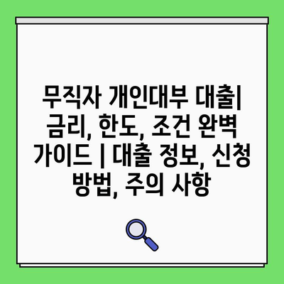 무직자 개인대부 대출| 금리, 한도, 조건 완벽 설명서 | 대출 정보, 신청 방법, 주의 사항