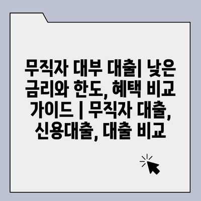 무직자 대부 대출 | 낮은 금리와 한도, 혜택 비교 설명서 | 무직자 대출, 신용대출, 대출 비교