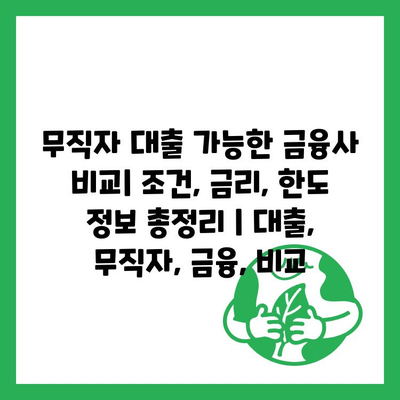 무직자 대출 가능한 금융사 비교| 조건, 금리, 한도 정보 총정리 | 대출, 무직자, 금융, 비교 에 대해 자주 묻는 질문 TOP 5