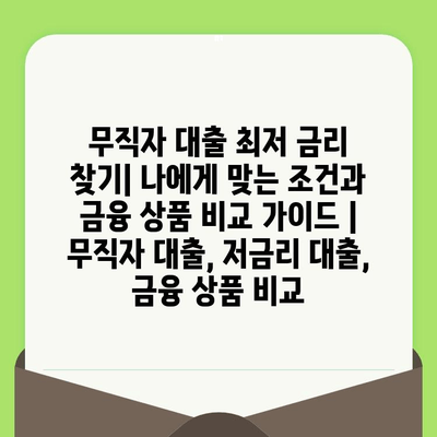 무직자 대출 최저 금리 찾기 | 나에게 맞는 조건과 금융 제품 비교 설명서 | 무직자 대출, 저금리 대출, 금융 제품 비교