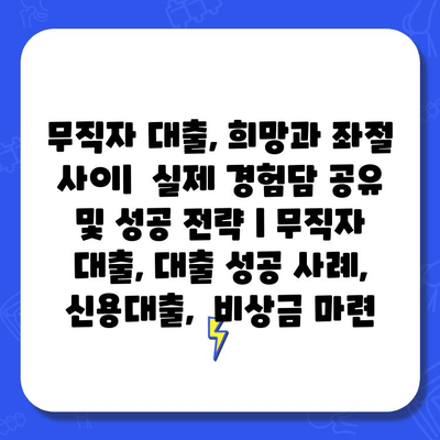 무직자 대출, 희망과 좌절 사이| 실제 경험담 공유 및 성공 전략 | 무직자 대출, 대출 성공 사례, 신용대출, 비상금 마련