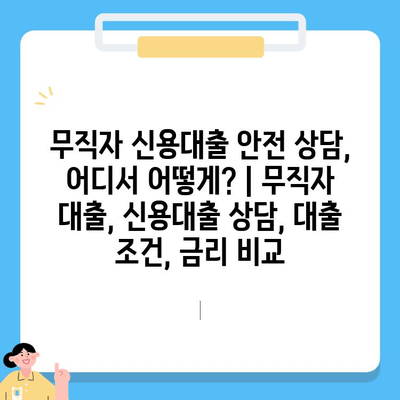 무직자 신용대출 안전 상담, 어디서 어떻게? | 무직자 대출, 신용대출 상담, 대출 조건, 금리 비교