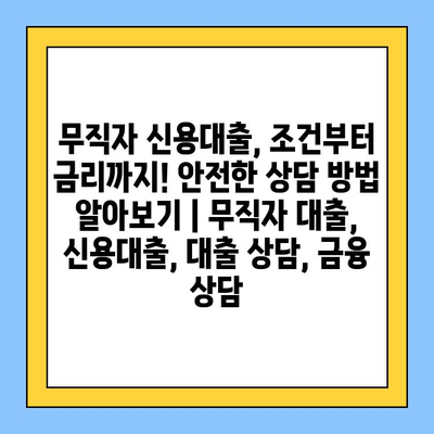 무직자 신용대출, 조건부터 금리까지! 안전한 상담 방법 알아보기 | 무직자 대출, 신용대출, 대출 상담, 금융 상담