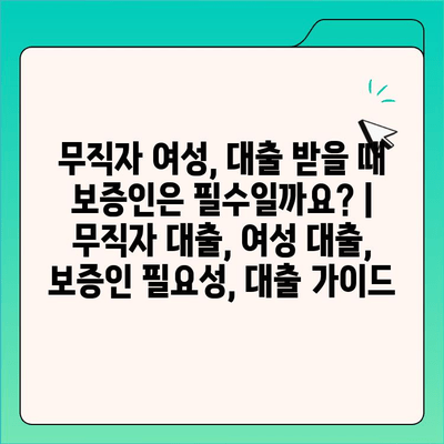 무직자 여성, 대출 받을 때 보증인은 필수일까요? | 무직자 대출, 여성 대출, 보증인 필요성, 대출 가이드