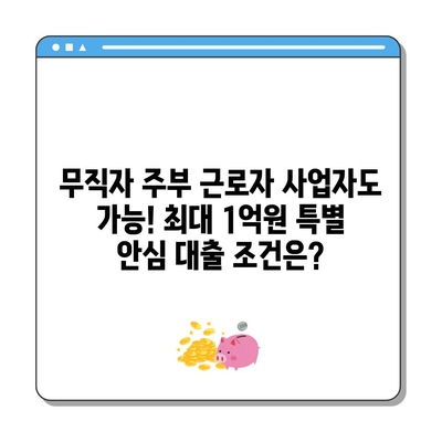 무직자, 주부, 근로자 및 사업자를 위한 특별 안심 대출 상품, 최대 1억원 대출이 가능하다는 내용을 담았습니다.