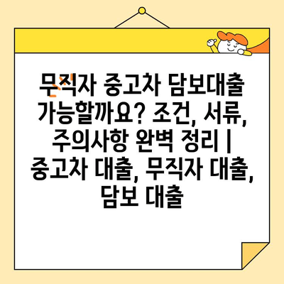 중고차 담보대출은 자동차를 담보로 돈을 빌리는 방식으로, 무직자도 낮은 금리로 큰 금액을 빌릴 수 있다는 장점이 있습니다. 하지만, 무직자라는 이유로 대출이 거절될 수도 있고, 높은 금리 적용될 가능성도 있습니다. 따라서, 무직자 중고차 담보대출을 생각하고 있다면, 신중하게 조건과 서류, 주의사항을 확인해야 합니다.