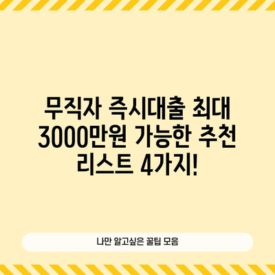 무직자 즉시대출 최대 3000만원 가능한 곳을 찾고 계신가요? 오늘은 무직자들도 큰 금액을 대출받을 수 있는 네 가지 금융 상품을 소개하겠습니다. 이 글을 통해 본인에게 적합한 대출 상품을 찾아보세요!