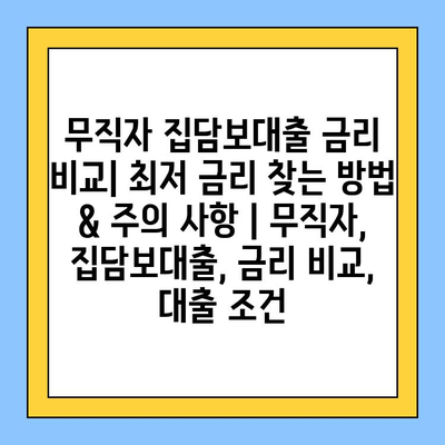 무직자 집담보대출 금리 비교| 최저 금리 찾는 방법 & 주의 사항 | 무직자, 집담보대출, 금리 비교, 대출 조건