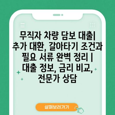 무직자 차량 담보 대출 | 추가 대환, 갈아타기 조건과 필요 서류 완벽 정리 | 대출 정보, 금리 비교, 전문가 상담