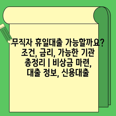 무직자 휴일대출 가능할까요? 조건, 금리, 가능한 기관 총정리 | 비상금 마련, 대출 정보, 신용대출