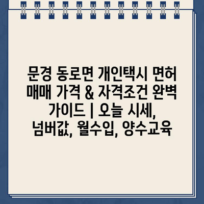 문경 동로면 개인택시 면허 매매 가격 & 자격조건 완벽 설명서 | 오늘 시세, 넘버값, 월수입, 양수교육