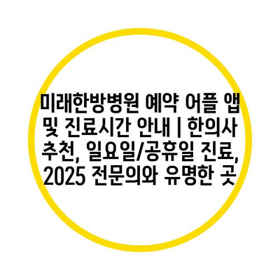 미래한방병원 예약 어플 앱 및 진료시간 공지 | 한의사 추천, 일요일/공휴일 진료, 2025 전연락와 유명한 곳 에 대해 자주 묻는 질문 TOP 5