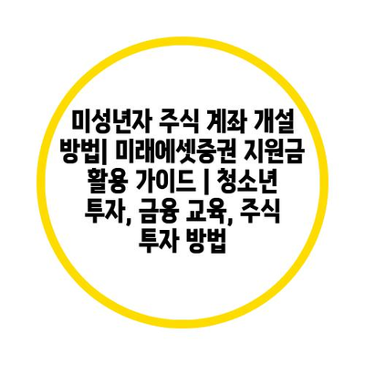 미성년자 주식 계좌 개설 방법| 미래에셋증권 지원금 활용 가이드 | 청소년 투자, 금융 교육, 주식 투자 방법