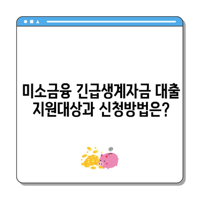 💡 미소금융 긴급생계자금 대출의 조건과 신청 절차를 알아보세요. 💡