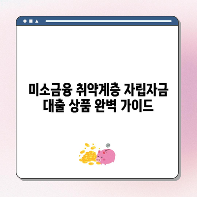미소금융 취약계층 자립자금 대출 상품 완벽 가이드