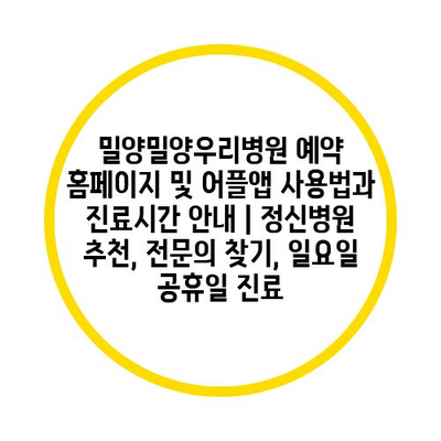 밀양밀양우리병원 예약 홈페이지 및 어플앱 사용법과 진료시간 공지 | 정신병원 추천, 전연락 찾기, 일요일 공휴일 진료 에 대해 자주 묻는 질문 TOP 5