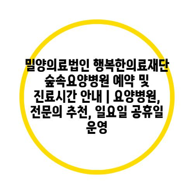 밀양의료법인 행복한의료재단 숲속요양병원 예약 및 진료시간 공지 | 요양병원, 전연락 추천, 일요일 공휴일 운영 에 대해 자주 묻는 질문 TOP 5