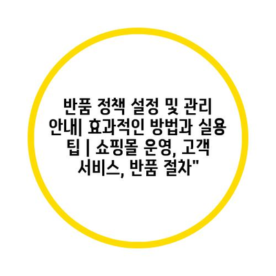 반품 정책 설정 및 관리 안내| 효과적인 방법과 실용 팁 | 쇼핑몰 운영, 고객 서비스, 반품 절차”