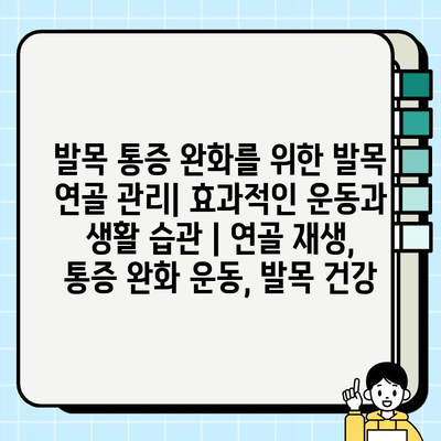 발목 통증 완화를 위한 발목 연골 관리 | 효과적인 운동과 생활 습관 | 연골 재생, 통증 완화 운동, 발목 건강