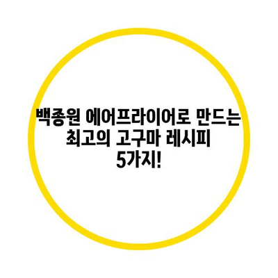 백종원 에어프라이어로 만드는 최고의 고구마 레시피 5가지!