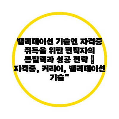 밸리데이션 기술인 자격증 취득을 위한 현직자의 통찰력과 성공 전략