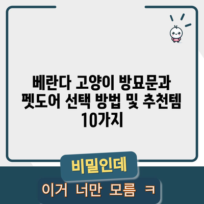 💡 베란다 고양이 방묘문과 펫도어의 선택 비법을 알아보세요. 💡