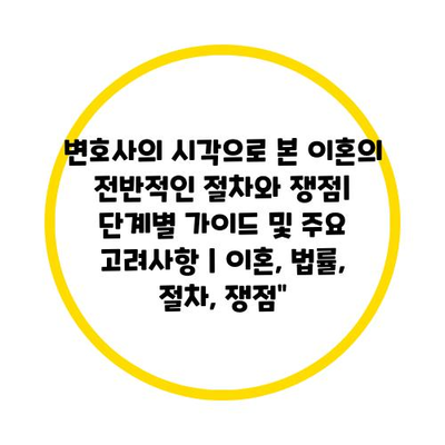 변호사의 시각으로 본 이혼의 전반적인 절차와 쟁점| 단계별 가이드 및 주요 고려사항 | 이혼, 법률, 절차, 쟁점”