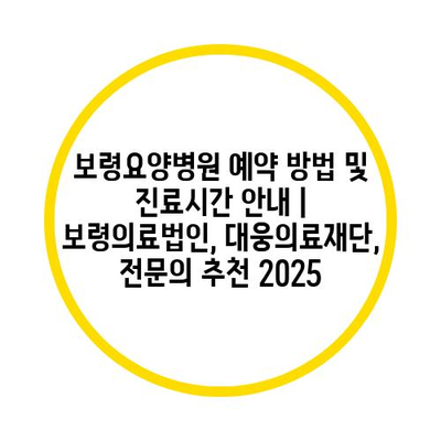 보령요양병원 예약 방법 및 진료시간 공지 | 보령의료법인, 대웅의료재단, 전연락 추천 2025
