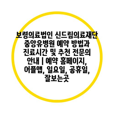 보령의료법인 신드림의료재단 중앙유병원 예약 방법을 지금 바로 알아보세요!