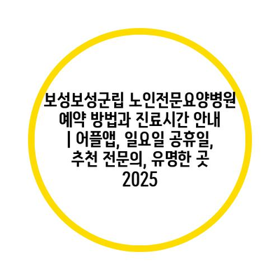 보성보성군립 노인전문요양병원 예약 방법과 진료시간 공지 | 어플앱, 일요일 공휴일, 추천 전연락, 유명한 곳 2025에 대해 자주 묻는 질문 TOP 5