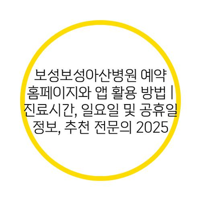 2025년에도 보성보성아산병원은 더욱 발전된 서비스를 제공할 예정이니, 잊지 말고 예약 홈페이지와 앱을 활용해 보세요.