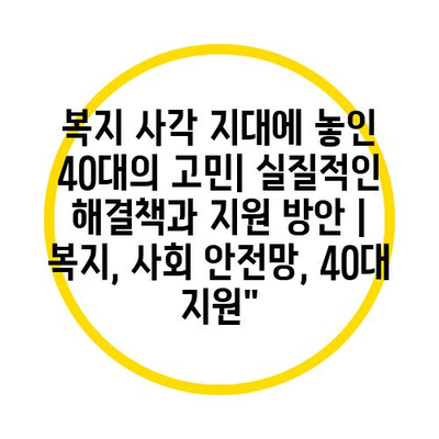 복지 사각 지대에 놓인 40대의 고민| 실질적인 해결책과 지원 방안 | 복지, 사회 안전망, 40대 지원