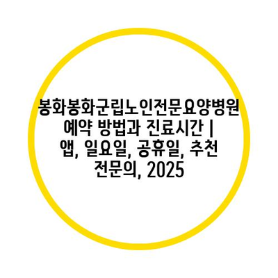 봉화봉화군립노인전문요양병원 예약 방법과 진료시간 | 앱, 일요일, 공휴일, 추천 전연락, 2025에 대해 알려알려드리겠습니다.