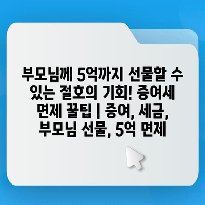 부모님께 드리는 특별한 선물, 5억까지 증여세 걱정 없이 안전하게 전달하는 방법을 알려제공합니다! 증여세 면제 꿀노하우를 활용하여 세금 부담 없이 마음을 전하고, 가족 간의 따뜻한 정을 나누세요. 지금 바로 알아보세요!
